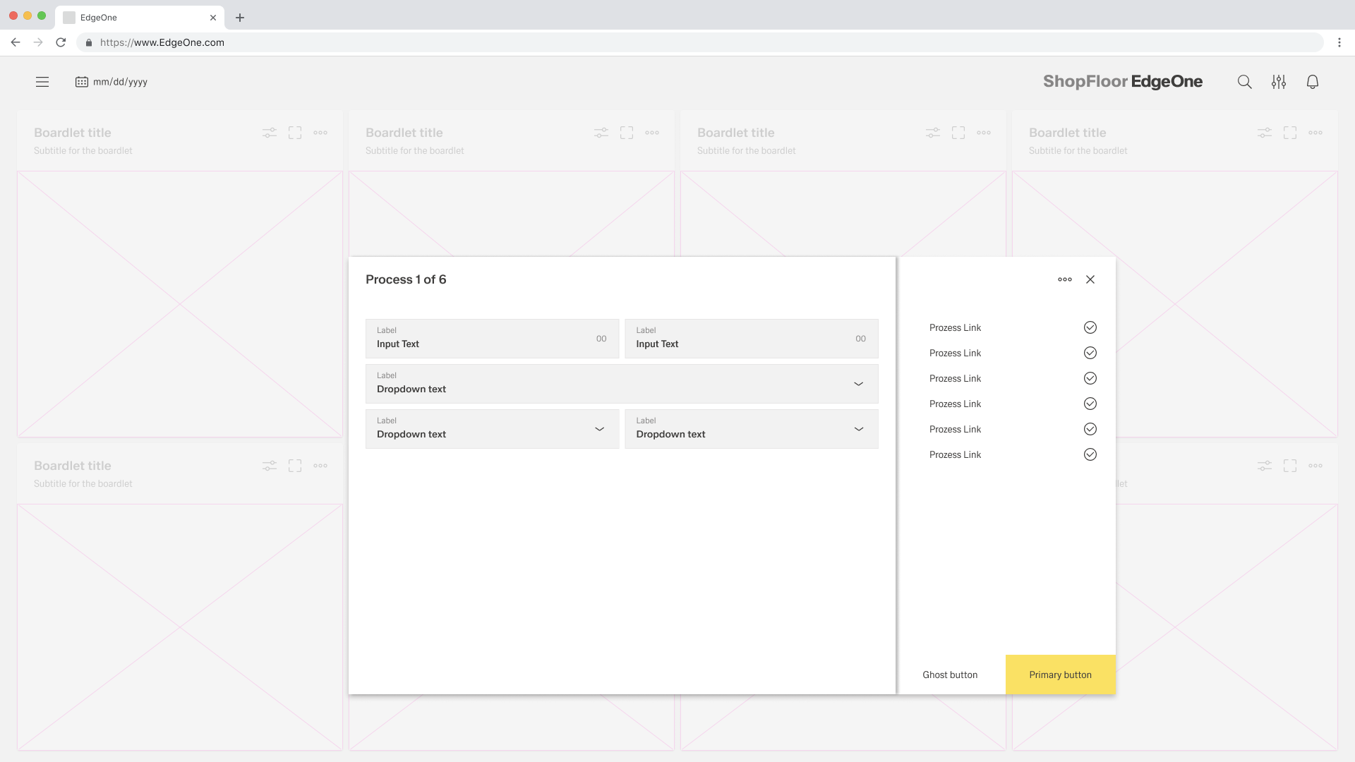 The modal component has a fixed maximum height. If the content of the dialogue is longer than the height of the dialogue, the main part should be divided into so that the user can scroll through the process. for this case, only the process dialogue may be used.