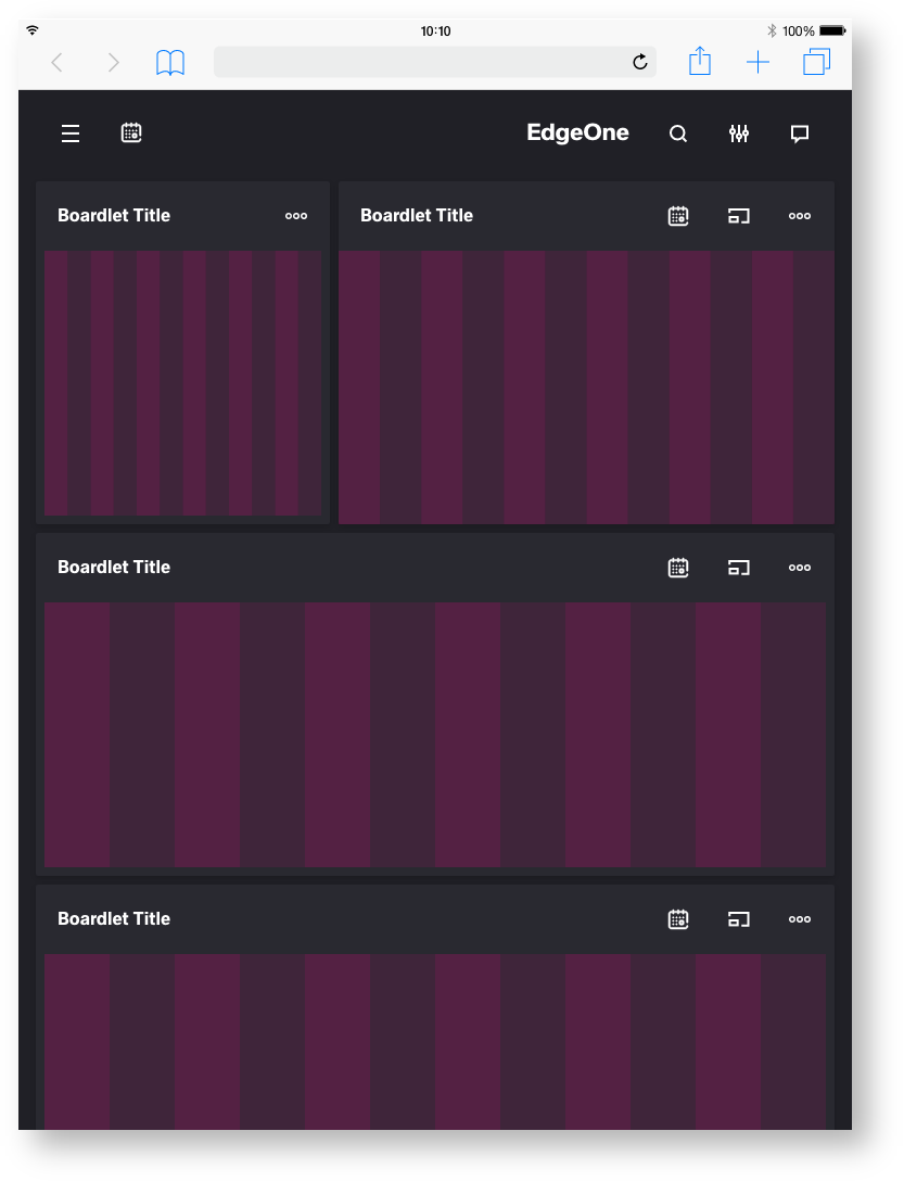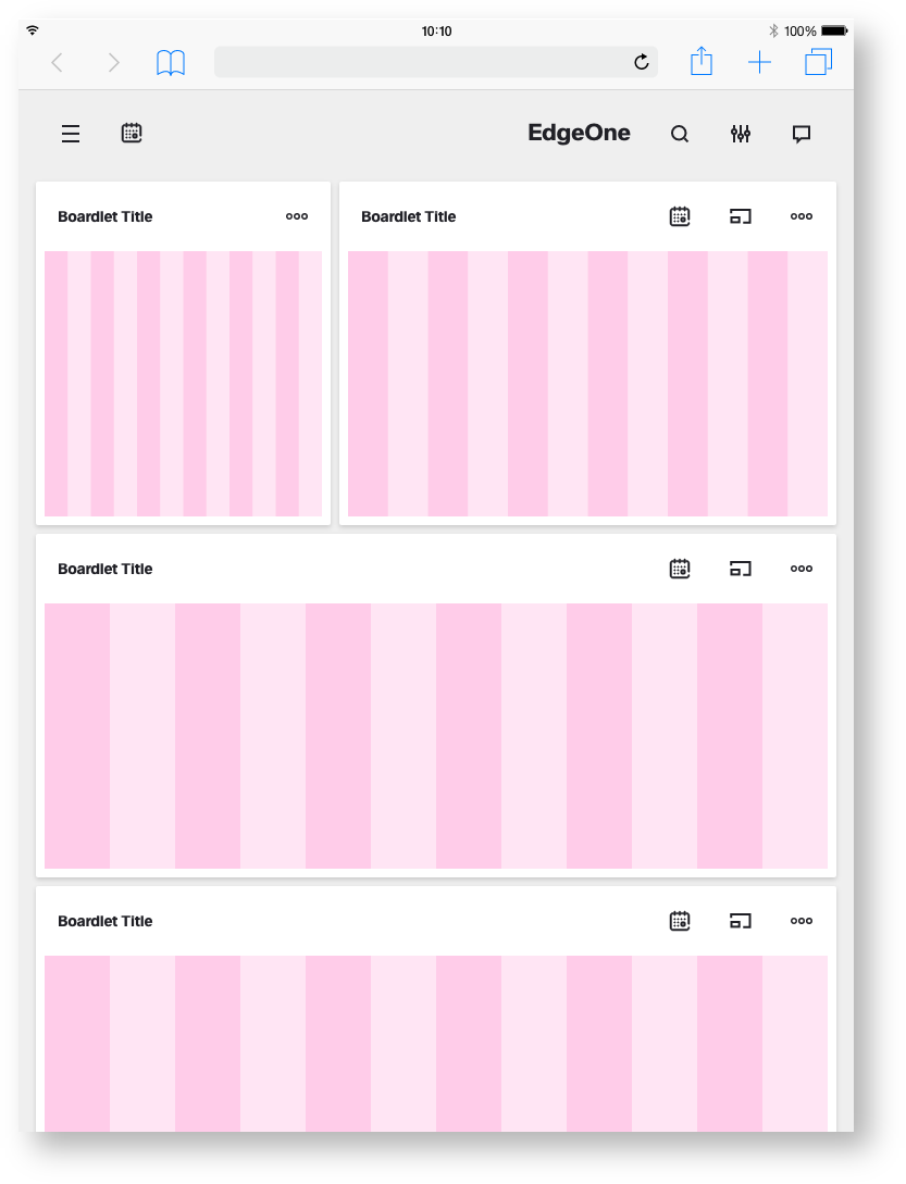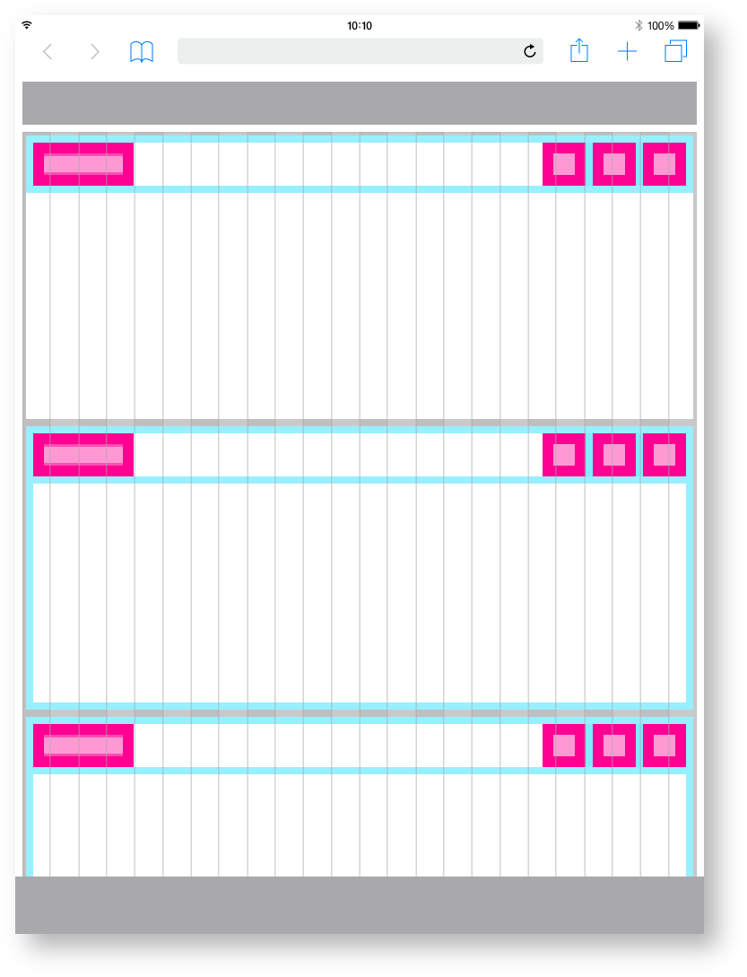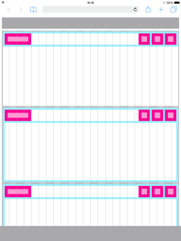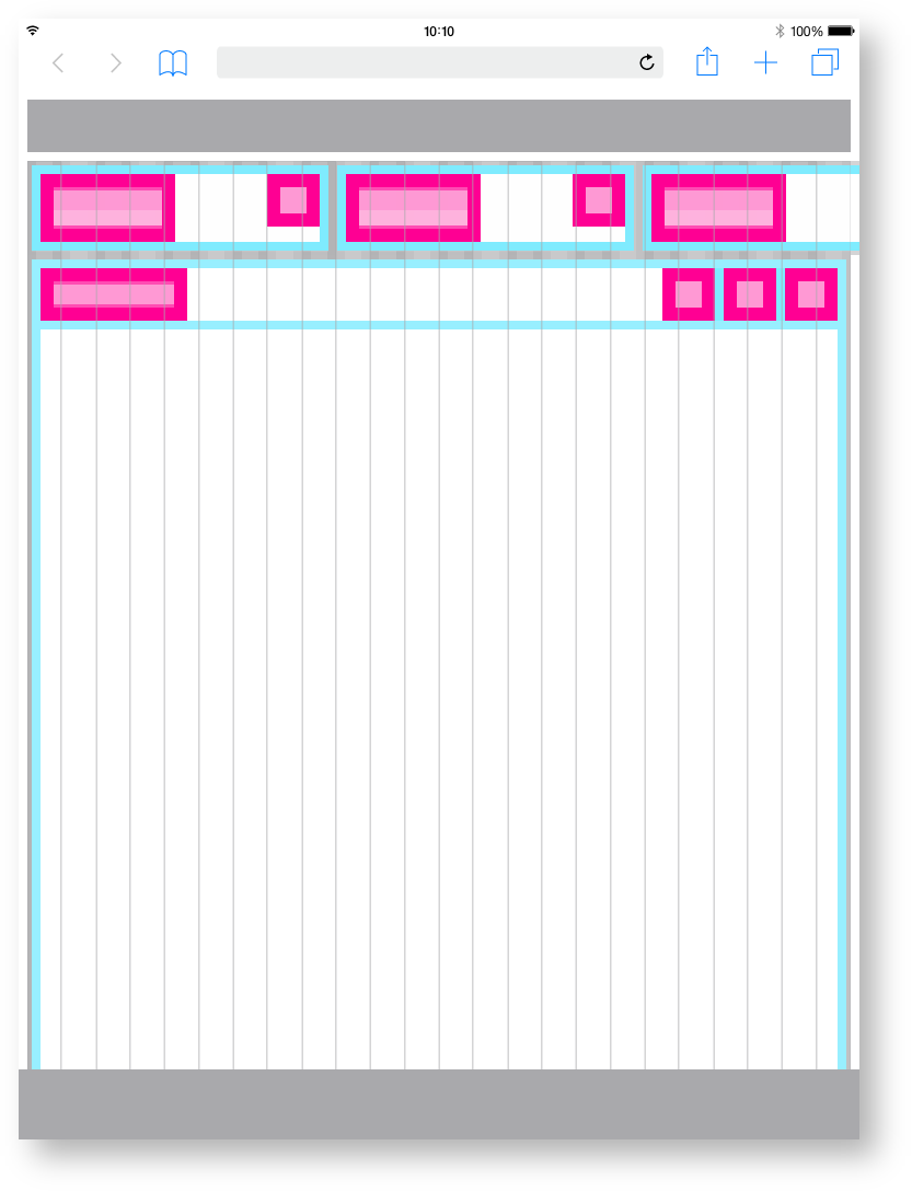 In this example, you can see how the 12-column grid behaves within the differently sized boardlets. Here you can also see why the grid does not have a column space. This would mean that the spaces within the boardlets would be different widths. For this reason, distances are determined by margin.
