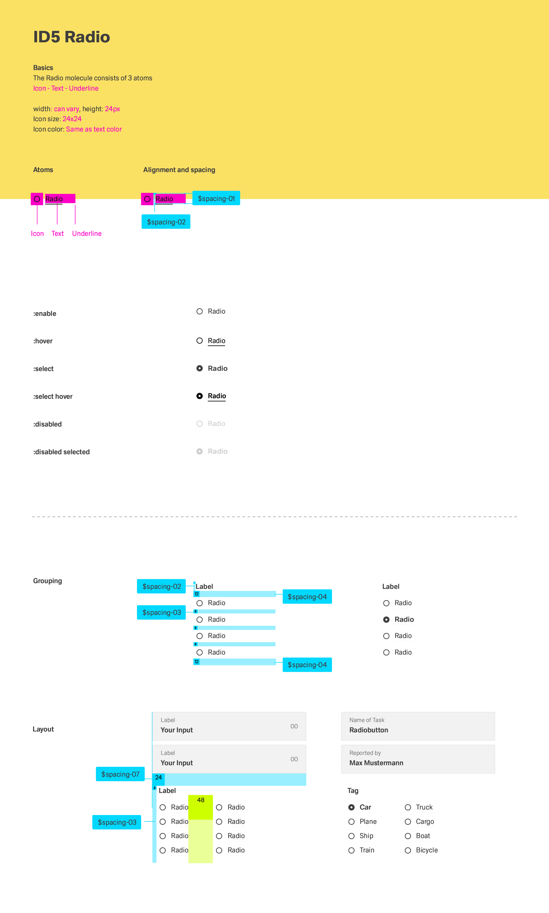 |  Default 24px | 1,5 rem | Zeplin Documentation | Layout example | |