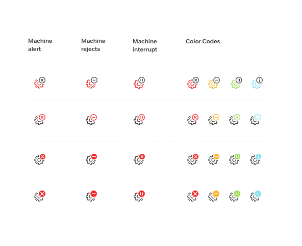 The Extension. This works only in conjunction with the indicator icon and shows different states of the indicator icon. Such as machine defective, unavailable, paused etc. The extension can never be used alone. The extensions may vary in color but not in size.