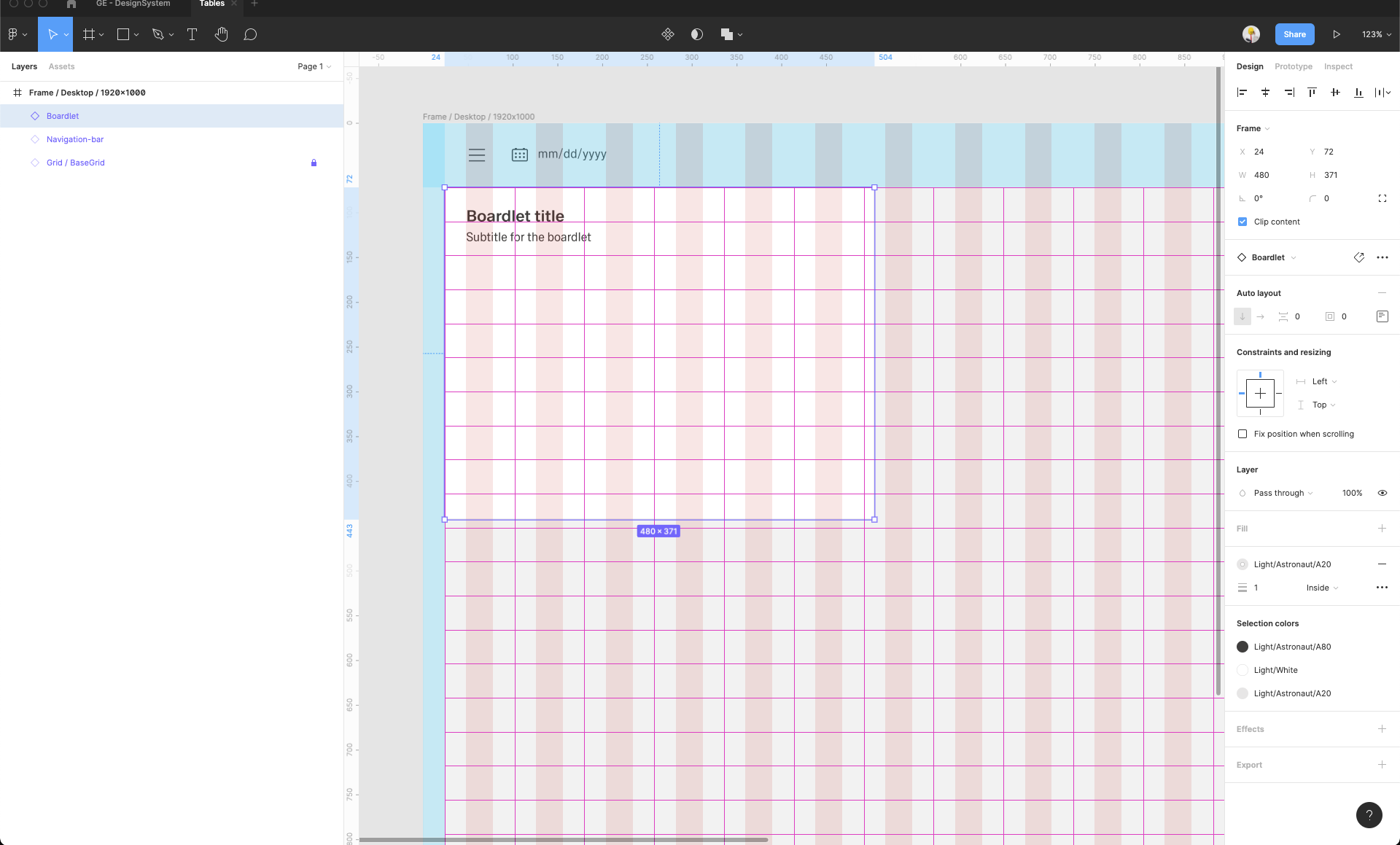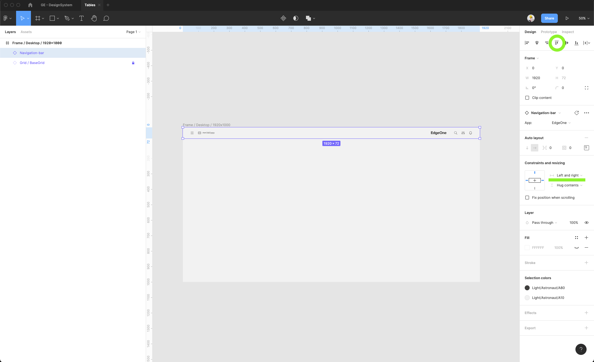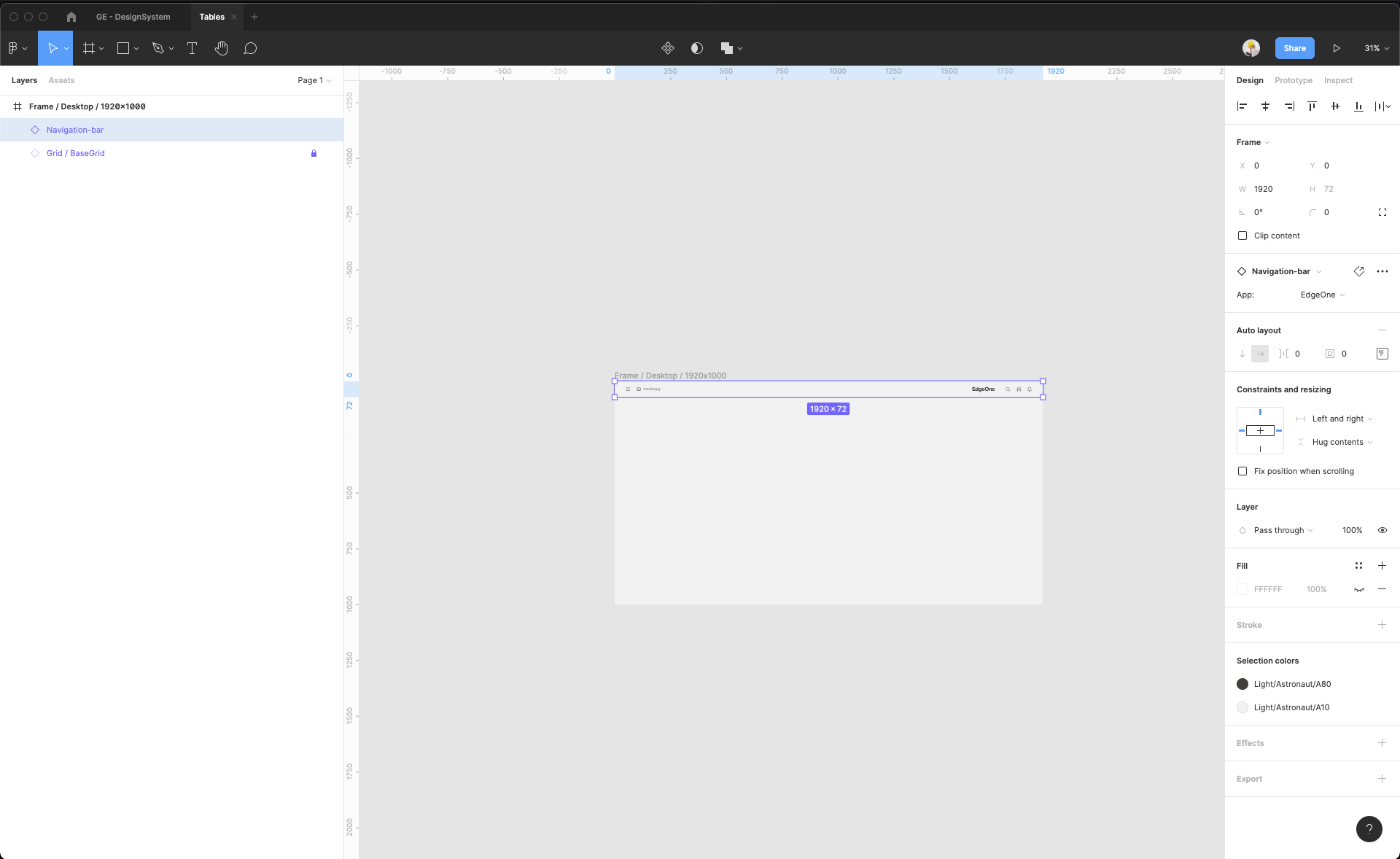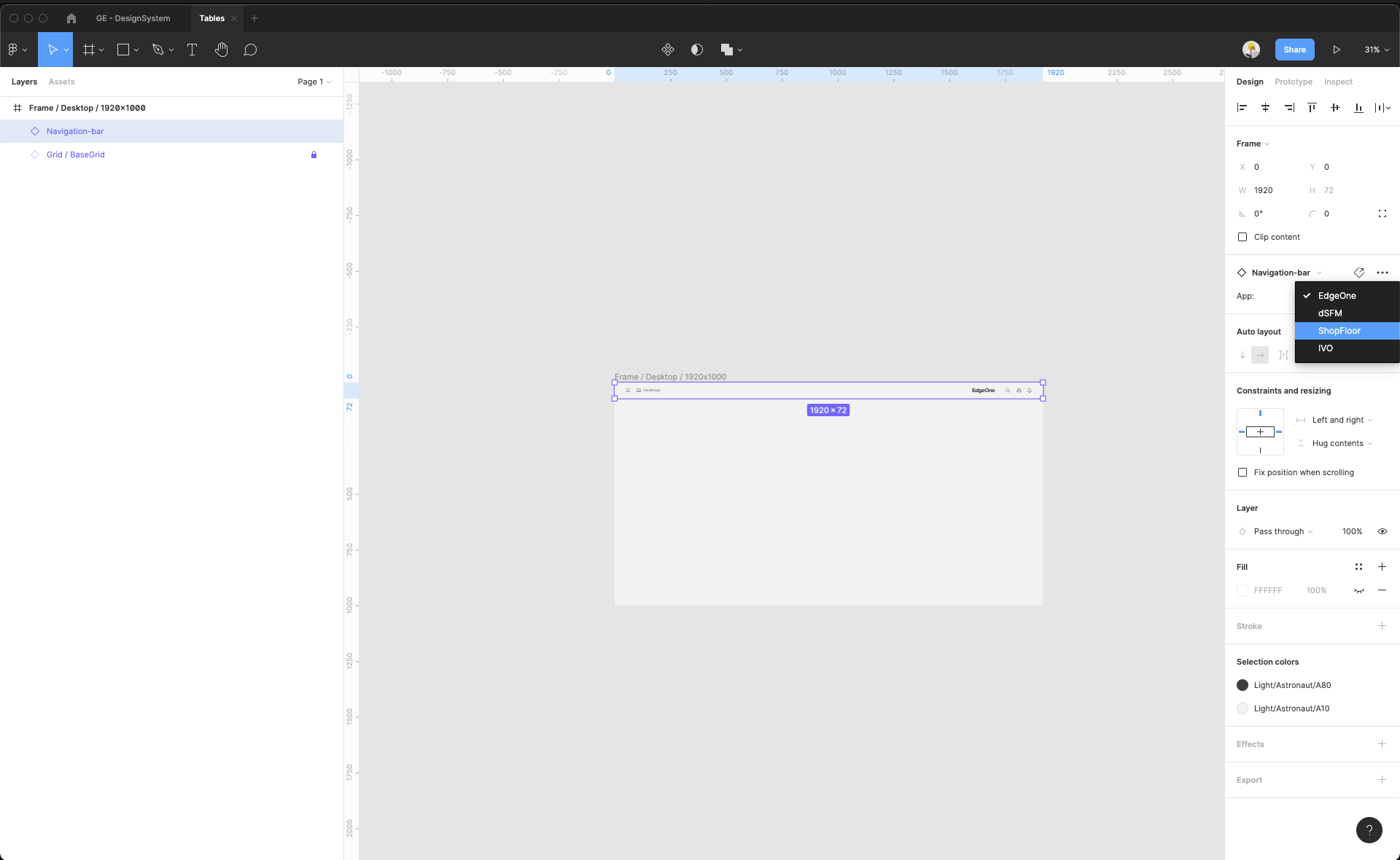 | 8 | Detach the selected frame. Because it's an instance from the master component inside GE Design System, you cannot edit this frame or put anything inside it. Detach it, so you can edit it but all grids won't be removed. | ||
