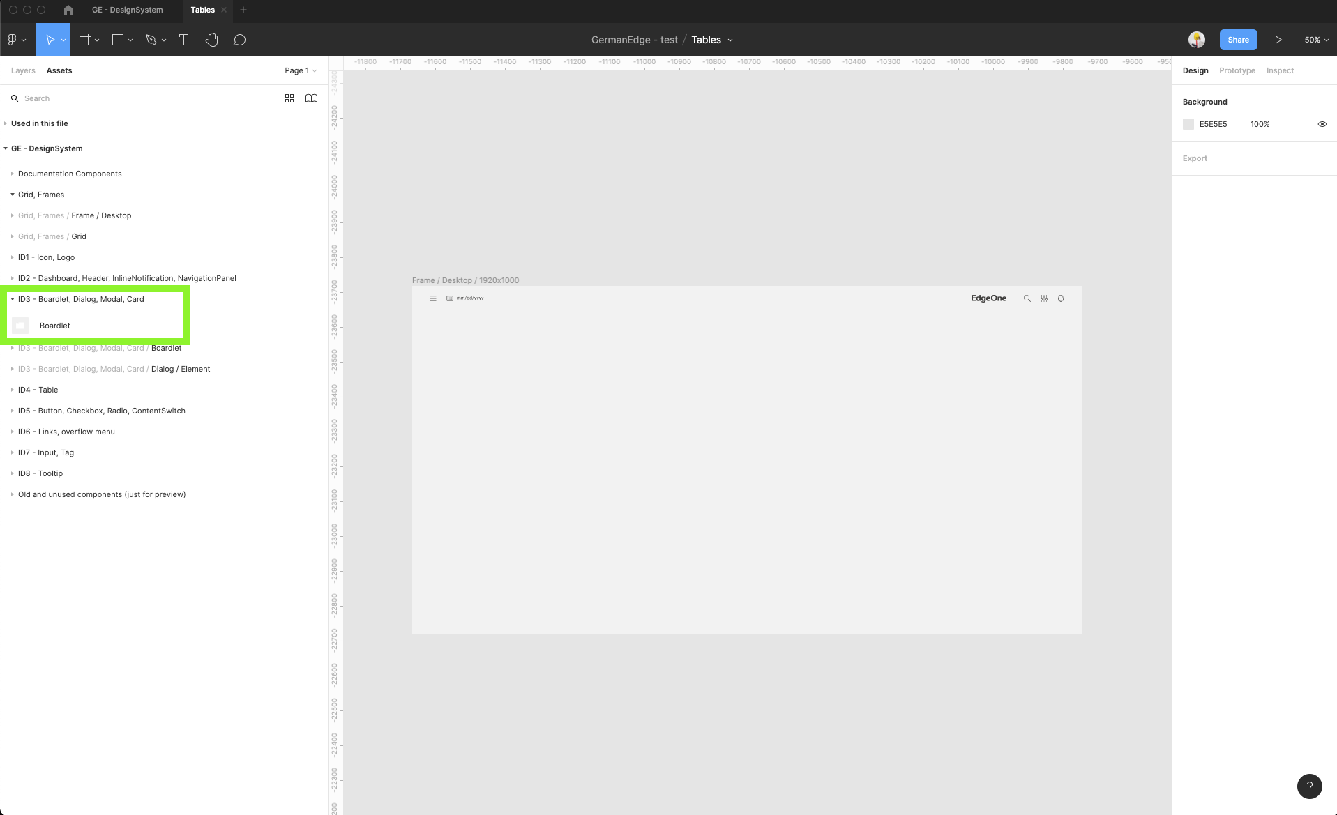| 11 | Add boardlet components. Find the Boardlet component inside the ID3 components group. Add this component inside the frame. Turn on the Layout grid view to help yourself to place it into the right places. | ||