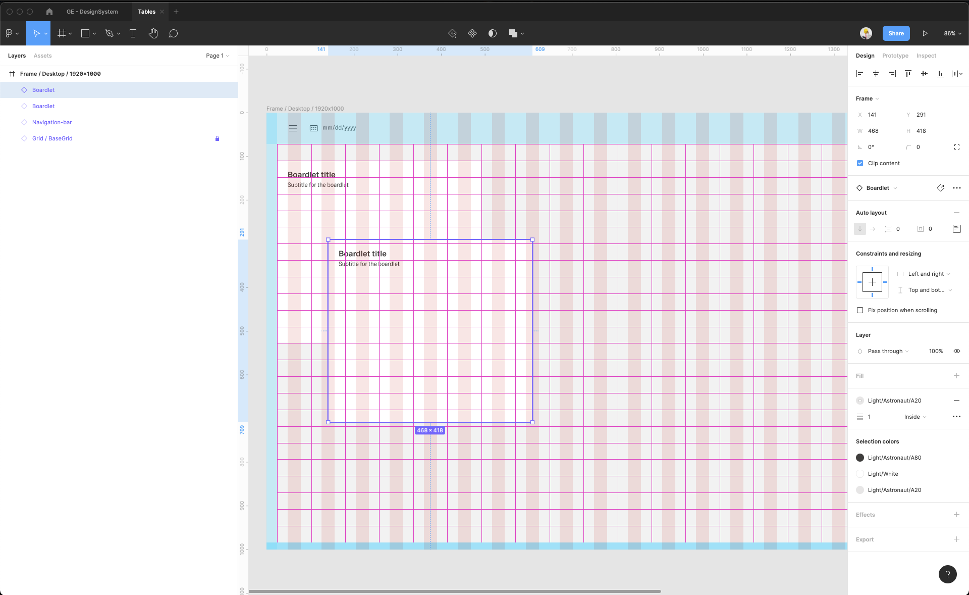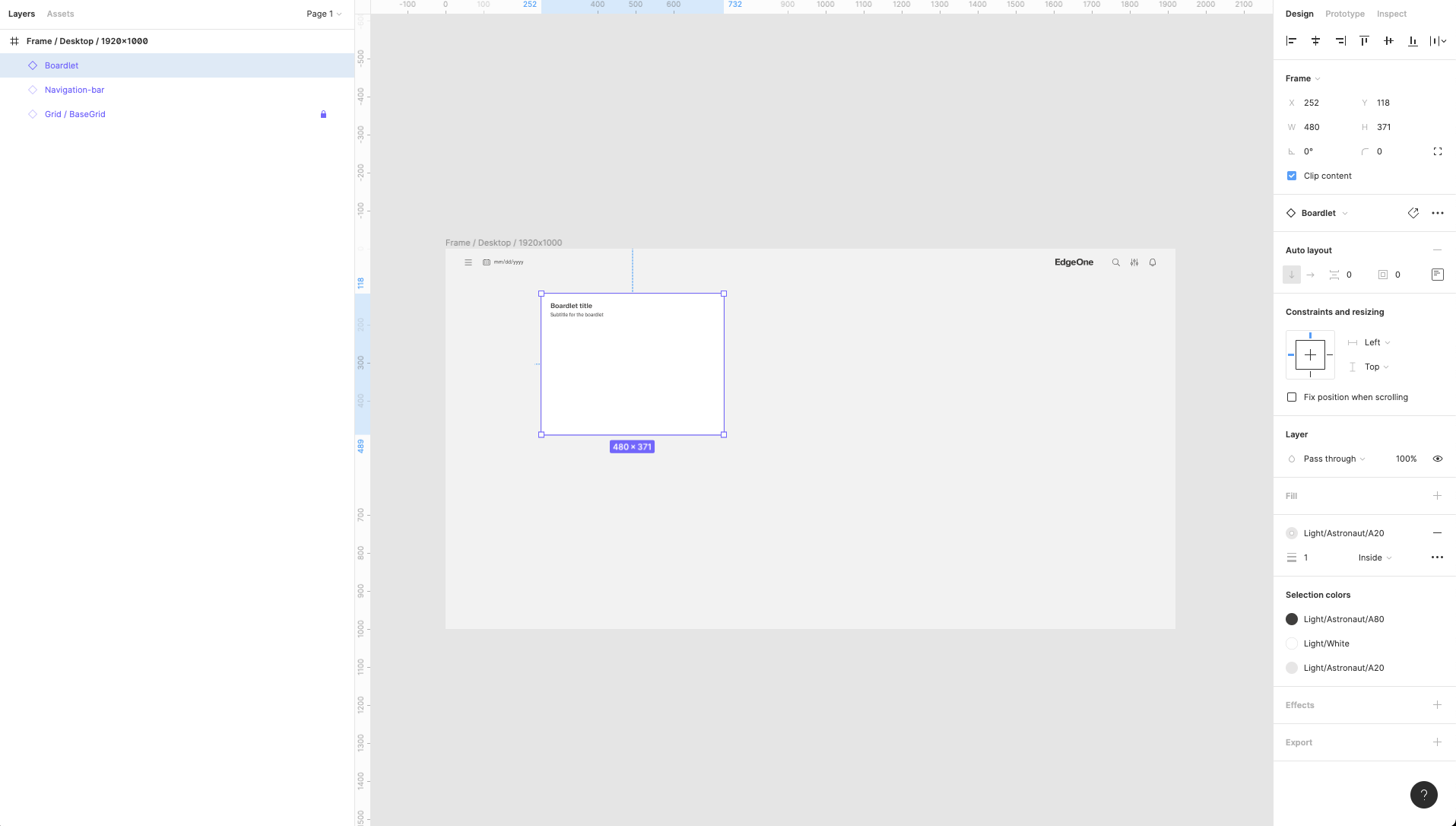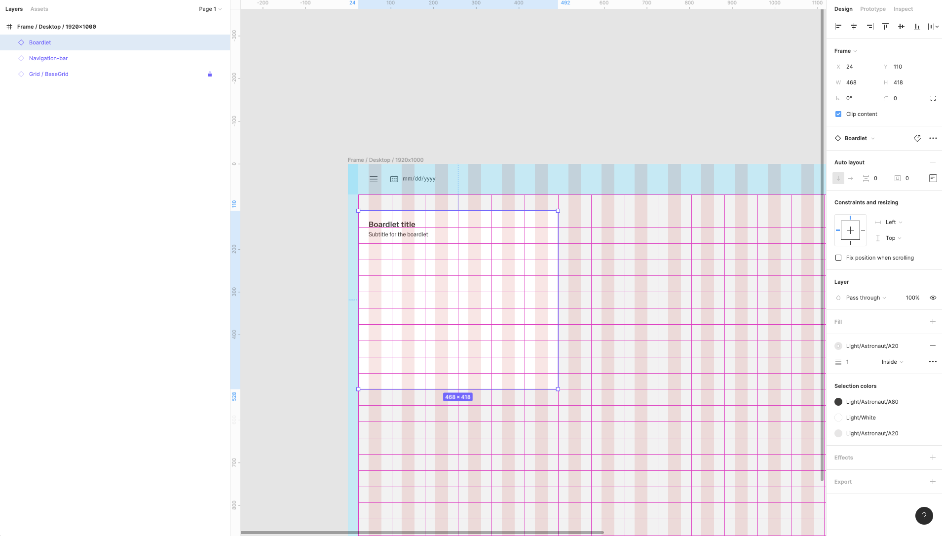 | 12 | Copy and pase / duplicate Boardlet component to add one more inside the frame. Place it, adjust the rezising and constraints and turn off the Layout grid view to preview how whole screen looks like. | ||