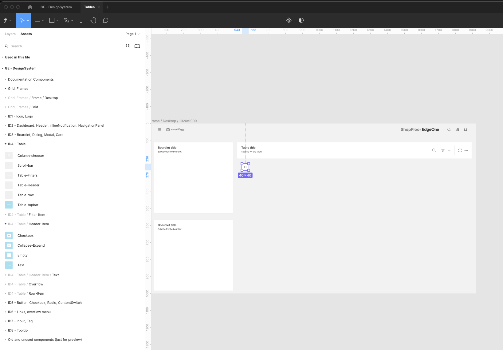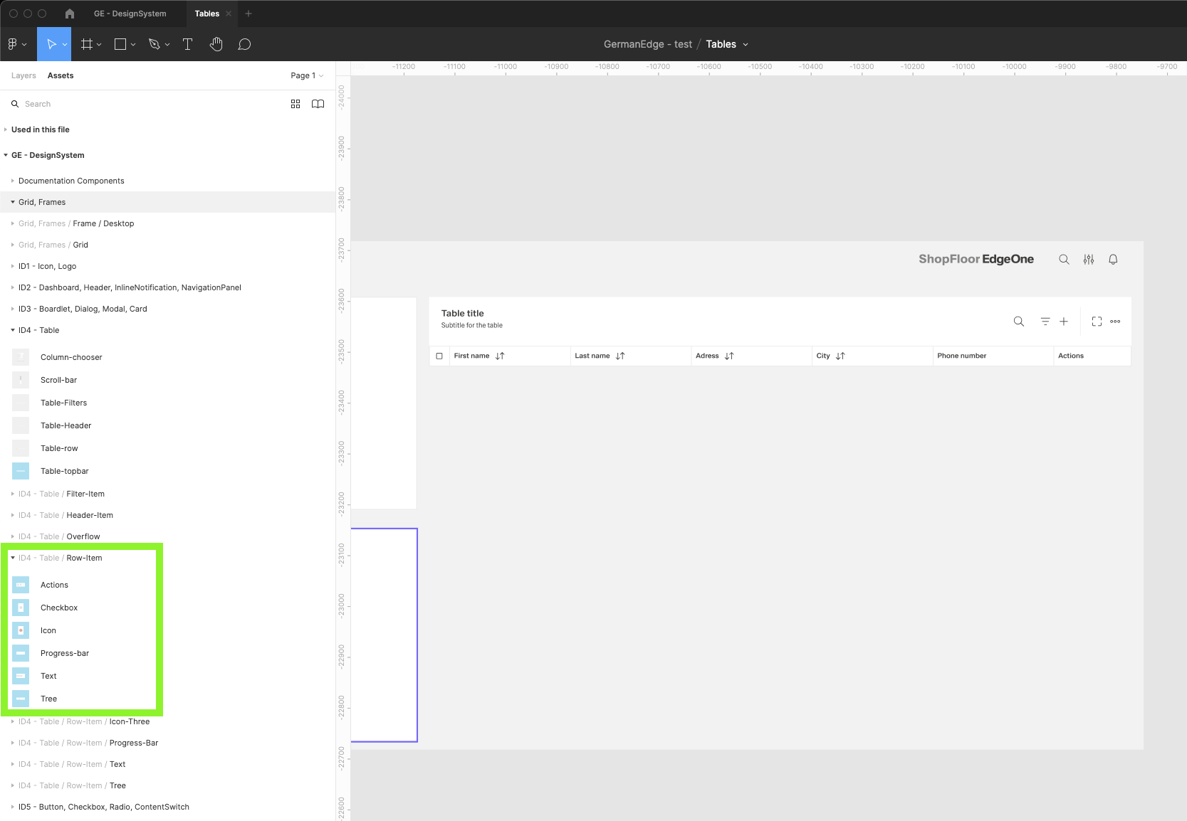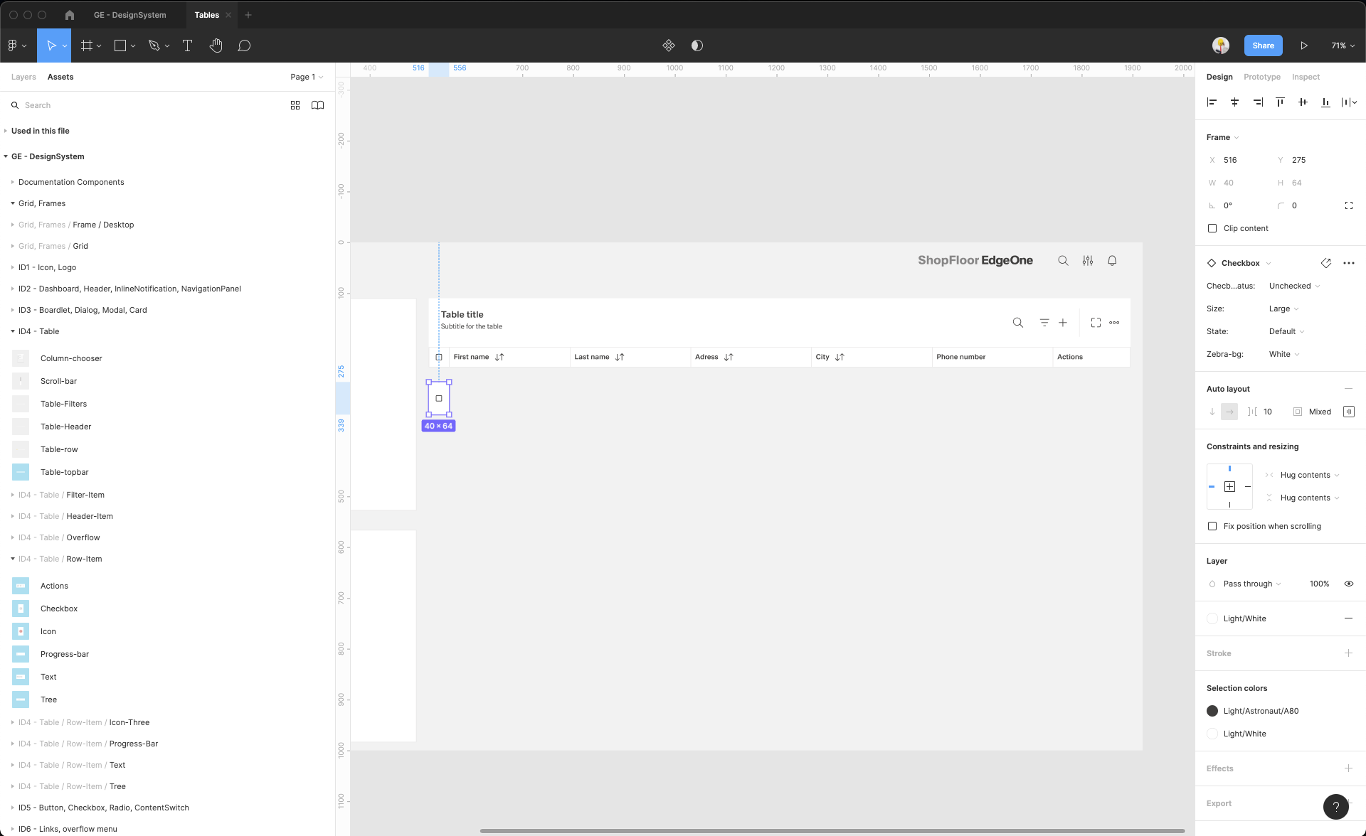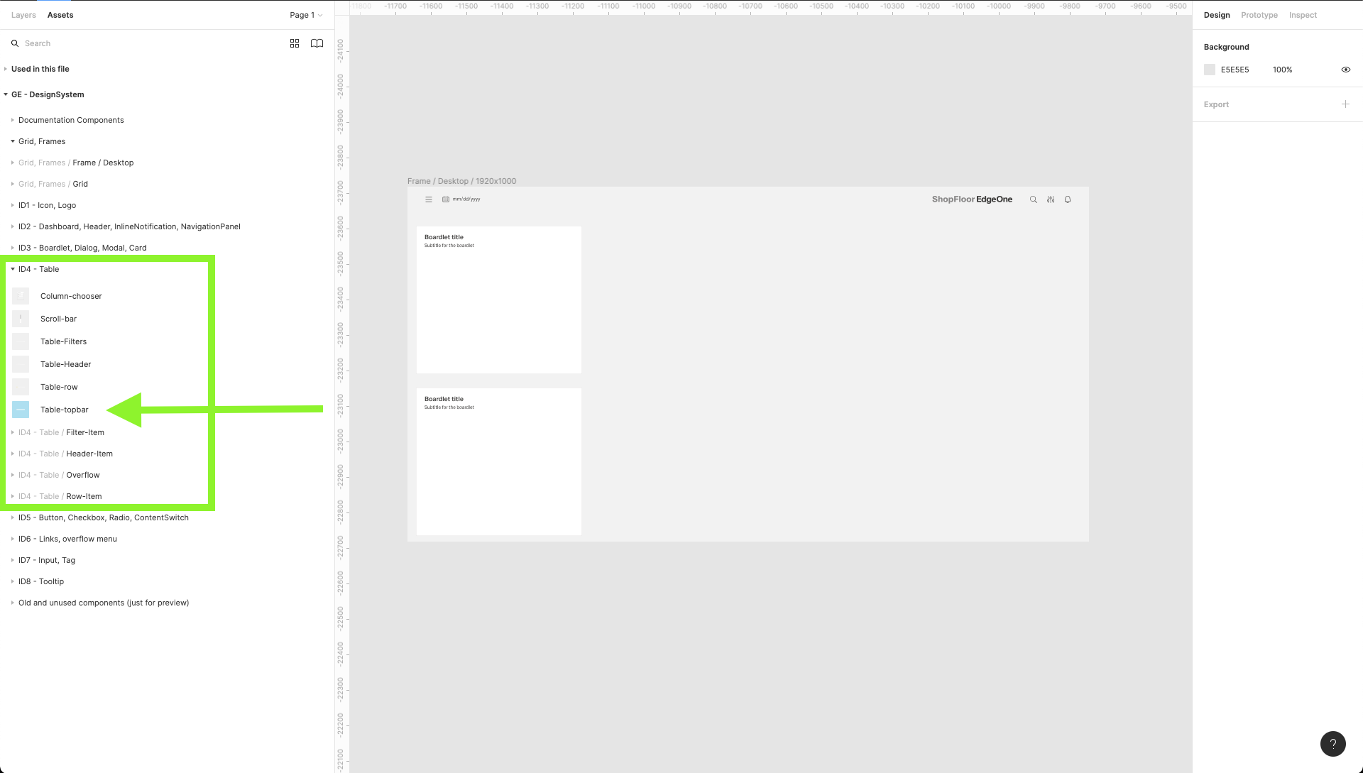 | 13 | Add table components. Find the Table-topbar component inside the ID4 components group. | ||