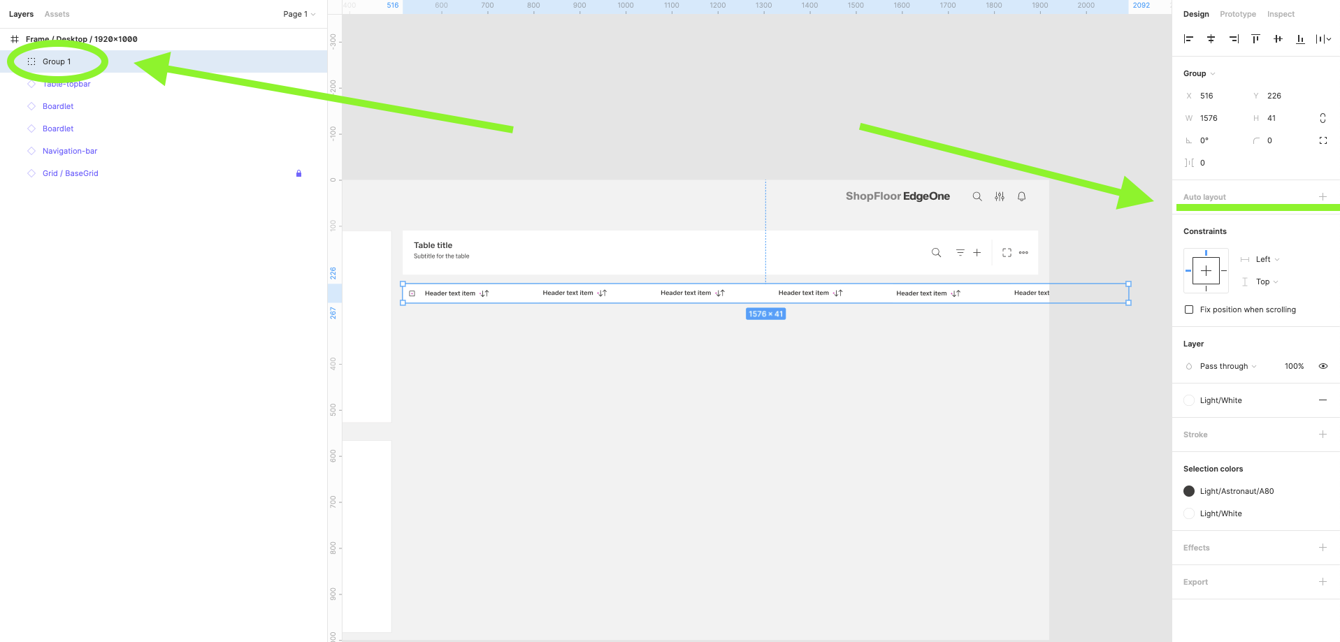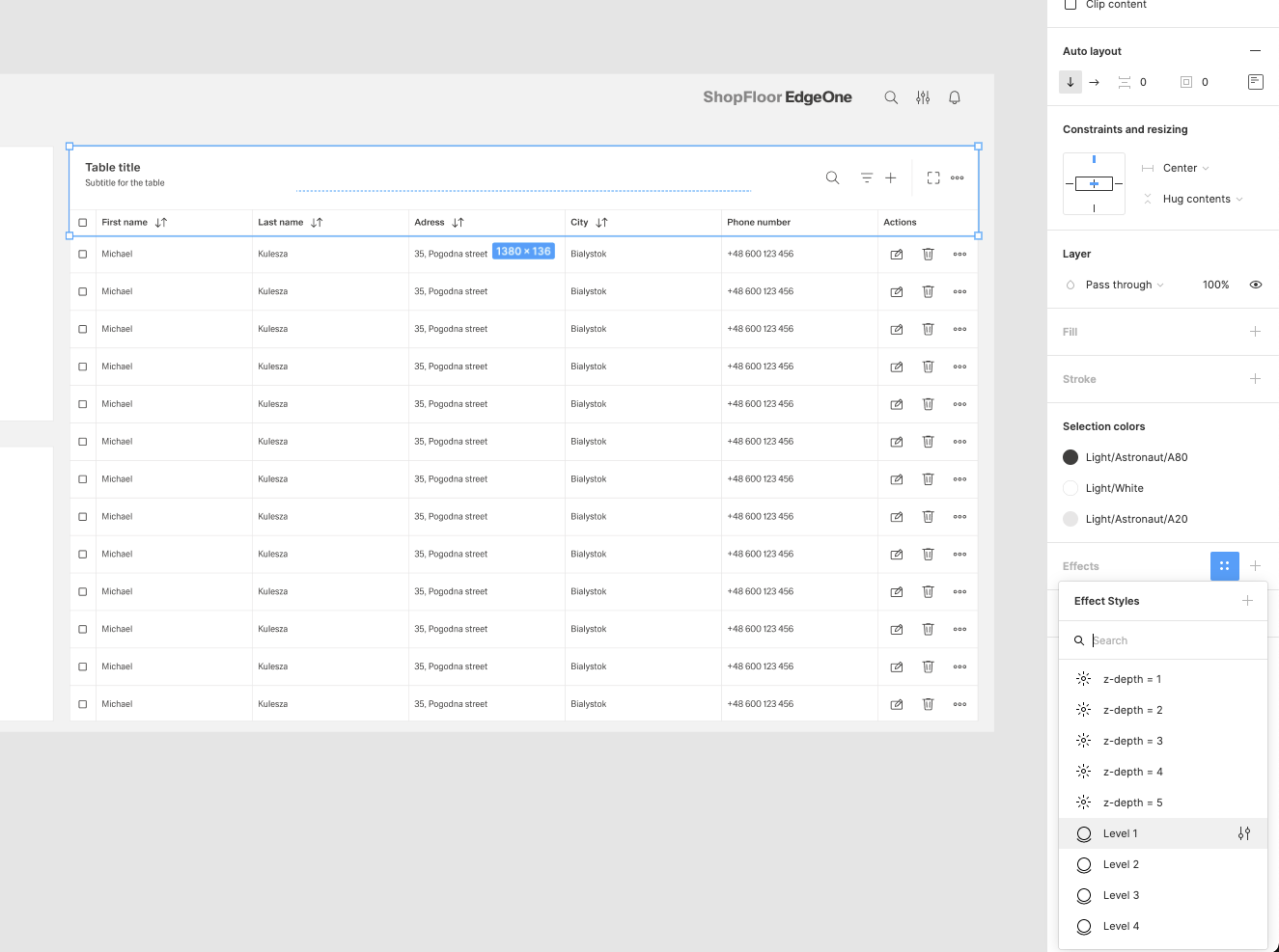 | 17 | Group the Table Top-bar and Headers group into one group and name it i.e. Table-header. Ad an effect for this group - Elevation level 1 | ||