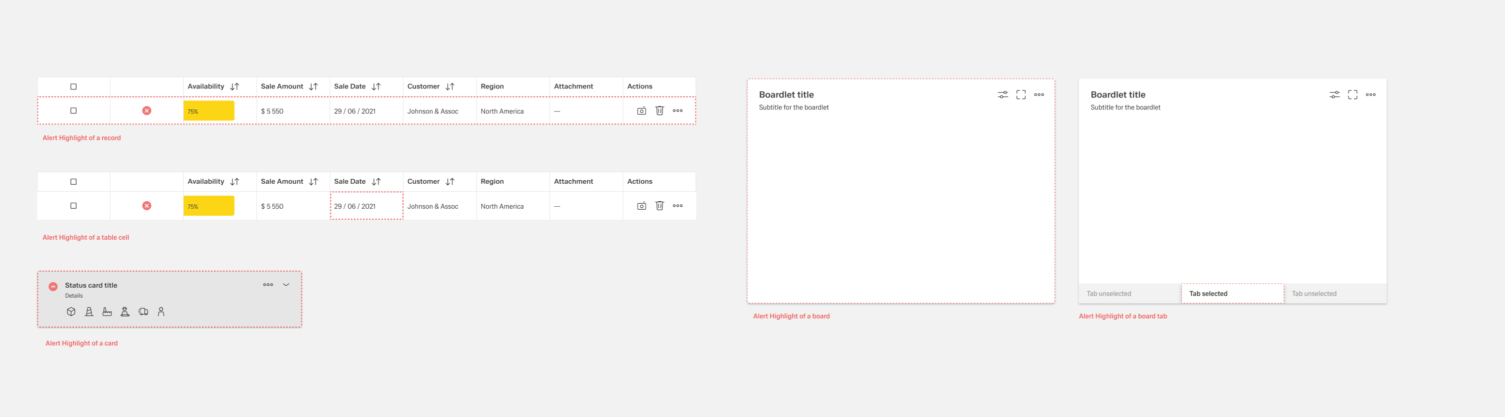 Each alert must be associated with a notification. Whether the alert is communicated with an inline or toast notification can be defined by the administrator in the backend. We recommend to highlight the area where the alert is localized.