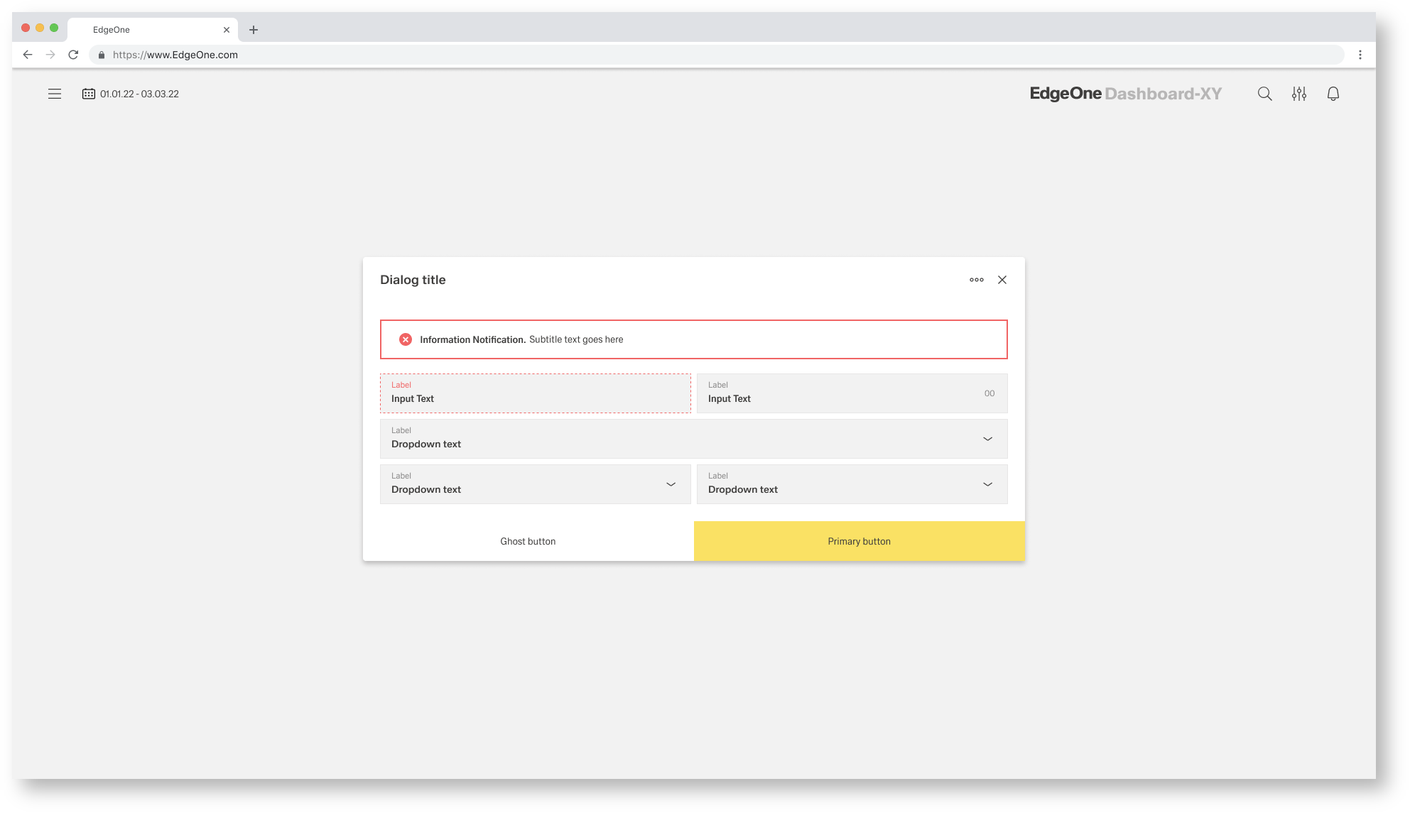 Inline notifications are divided into two application areas, notifications within the dashboard and within organisms such as dialogs, modals or sidebars. This is necessary to show the user the exact location of the error.