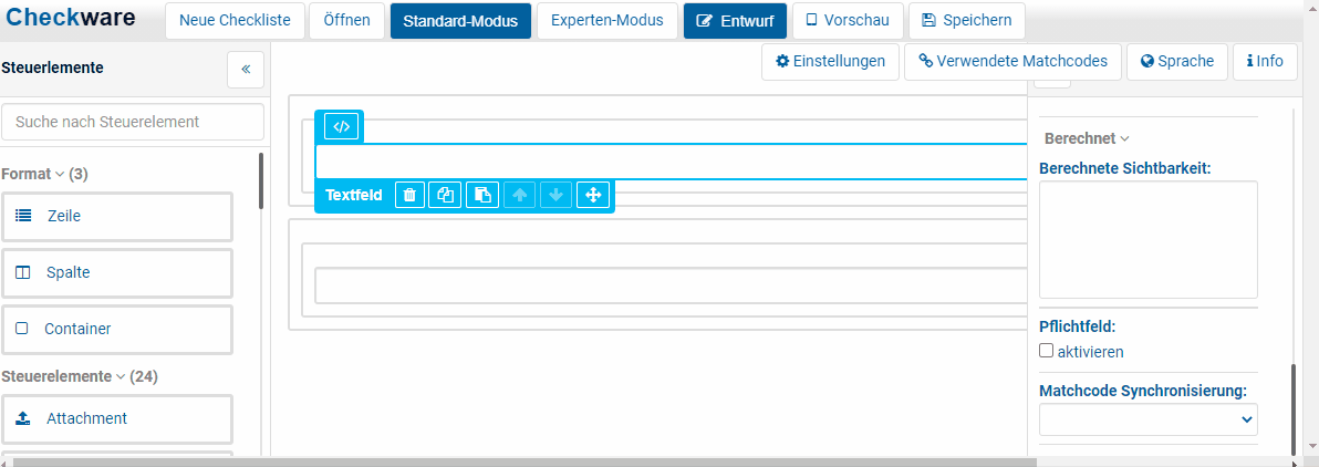 - Einführung des Checkware Designer "Standard"- und "Experten" Modus