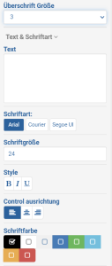 Im Feld "Überschrift Größe" können die 6 unterschiedliche Einstellungen gewählt werden. (Heading 1-6 als Standardelement in der HTML-Sprache)