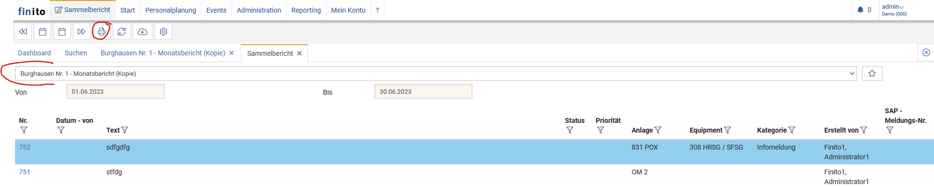 The shiftbook and its subfilter possibilities, like categories or status that are to be contained in the report.