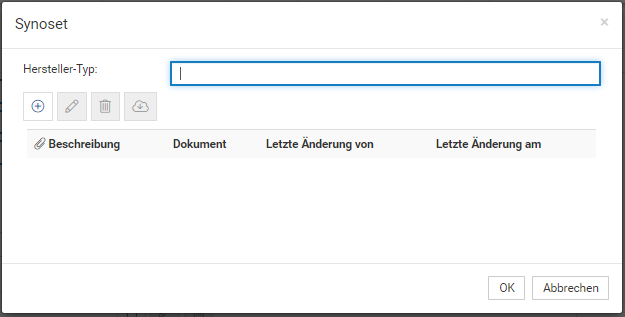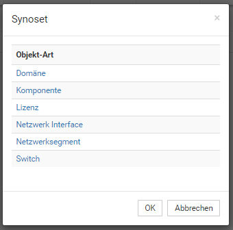 Sollte Ihnen beim Anlegen eines Objektes auffallen, das noch Stammdateneinträge (wie Hersteller, Status, Software, o.ä.) in der Suchtrefferliste oder Auswahlbox fehlen, können Sie diese ganz einfach im Synoset anlegen.