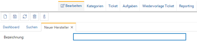 Nach dem Klick auf „Neu" (oder einen bestehenden Hersteller) öffnet sich die Stammdatenmaske des jeweiligen Stammdatentyps (z.B. Hersteller), und es können dort die entsprechenden Attribute gepflegt werden.