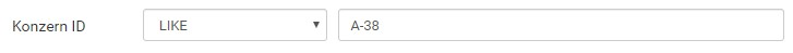 In diesem Beispiel werden alle Datensätze angezeigt, deren Konzern-ID an irgendeiner Stelle den Schlüssel „A-38" beinhalten, z. B. die Konzern-ID „BSP-A-38" oder die Konzern-ID „Abt. A-38".