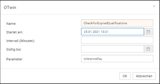 Je nach Job gibt es auch ein Textfeld um die Parameter anzugeben, in diesem Fall wären dass die Toleranz Tage.