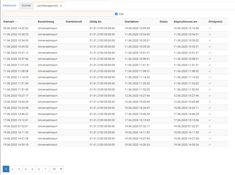 Die Ansicht kann über die Menüstruktur „Administration" - „Jobs" -> „Job-Management" erreicht werden.