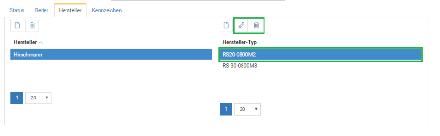 Sobald man eine Zeile in der Liste markiert, wird der Button zum Entfernen des Eintrages sichtbar. Wenn es wie beim Hersteller die Möglichkeit gibt einen Eintrag zu bearbeiten, wird auch dieser hier mit eingeblendet.