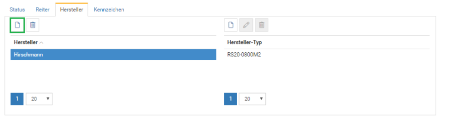 Will man für diesen Hersteller einen Hersteller-Typen pflegen muss die Zeile markiert werden, dann können auf der rechten Seite über den „Neu" Button bei den Herstellertypen, Einträge hinzufügen.