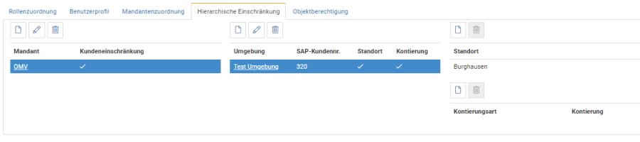 Mithilfe der Hierarchischen Einschränkung, können Benutzer auf Content wie Kunden, Standorte und Kontierungen eingeschränkt werden.