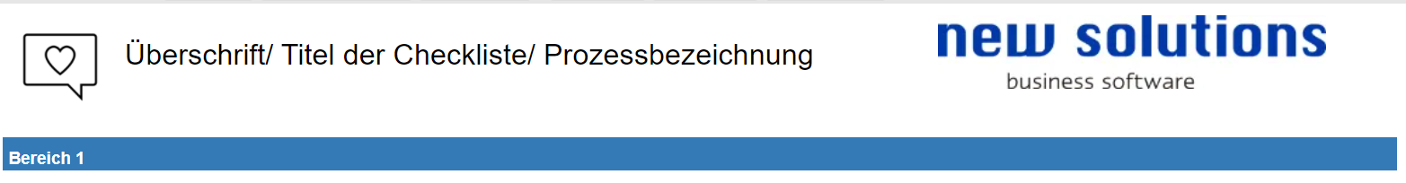 Checklistenkopf mit Piktogram für eine erste bildliche Beschreibung, Titel der Checkliste und jeweiliges Firmenlogo, dazu eine Beschreibungszeile für den ersten Teil der Checkliste