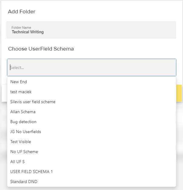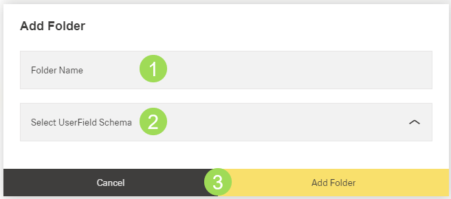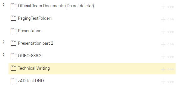 A new folder is always added on the main folder level to the list in alphabetical order.