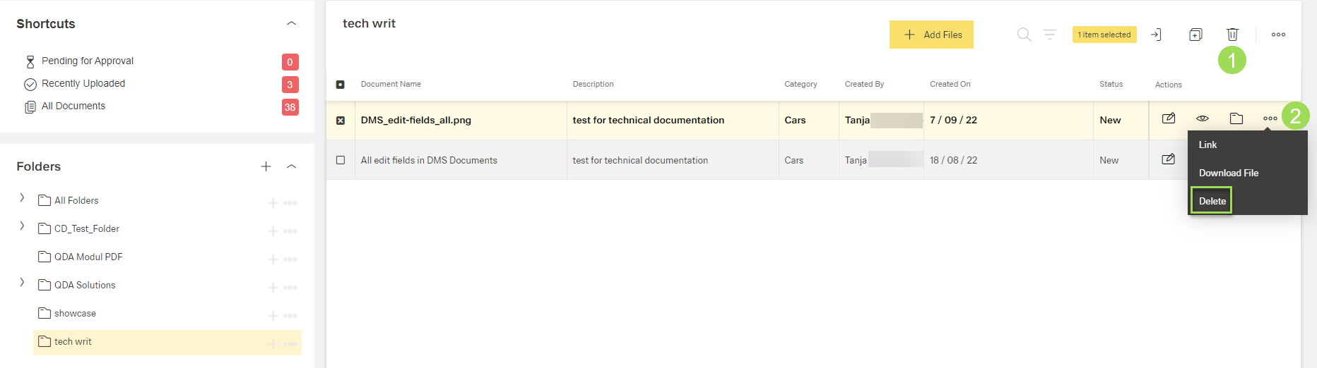 Delete a document in DMS (step by step)
