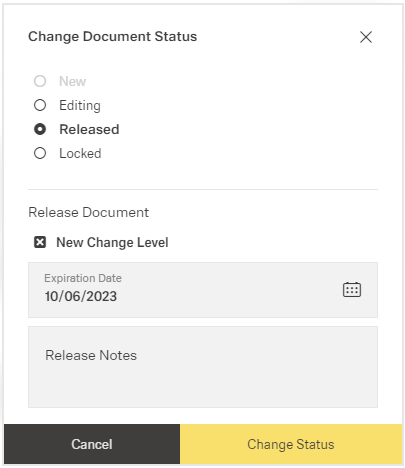 For this approval setting, the owner of the document can directly release it by selecting the document status "Released" and follow the corresponding dialog.