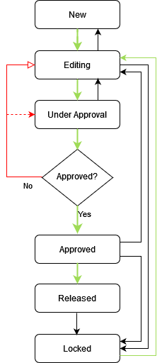 | Editing | document that needs to be updated or newly approved concerning possible actions, it's like a "new" document | change status to "under approval" / "approved" (if no approval is in action), "locked", "new" |