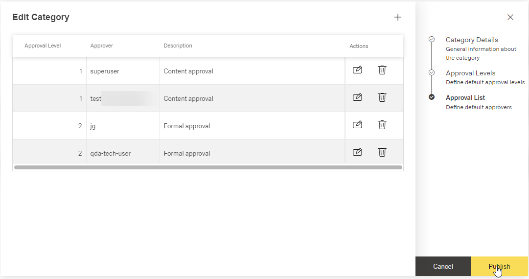 If you need to change the approver or the assigned level, click the button [] of the row to delete the row and add a new approver to the list.