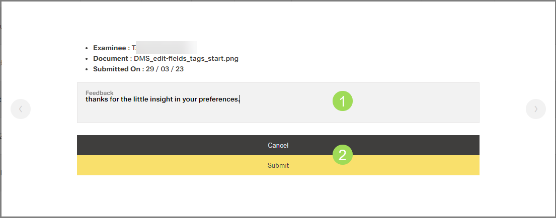 Applyis only active when a feedback was entered, (5) buttonNext [>]
