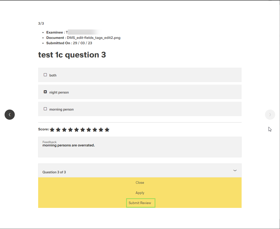 Optionally: Enter a feedback to this question and click the button Apply to save the feedback