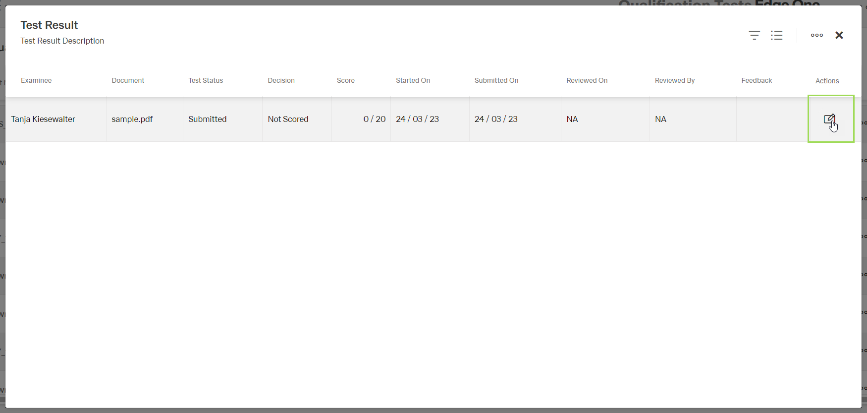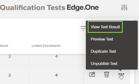In the qualification test table, click the button [] of the test result to be evaluated