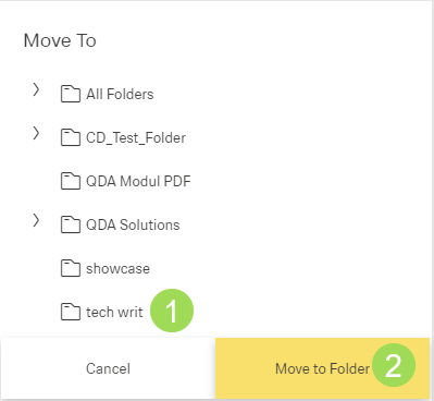 Select the target folder <1> and click the button Move to Folder <2>