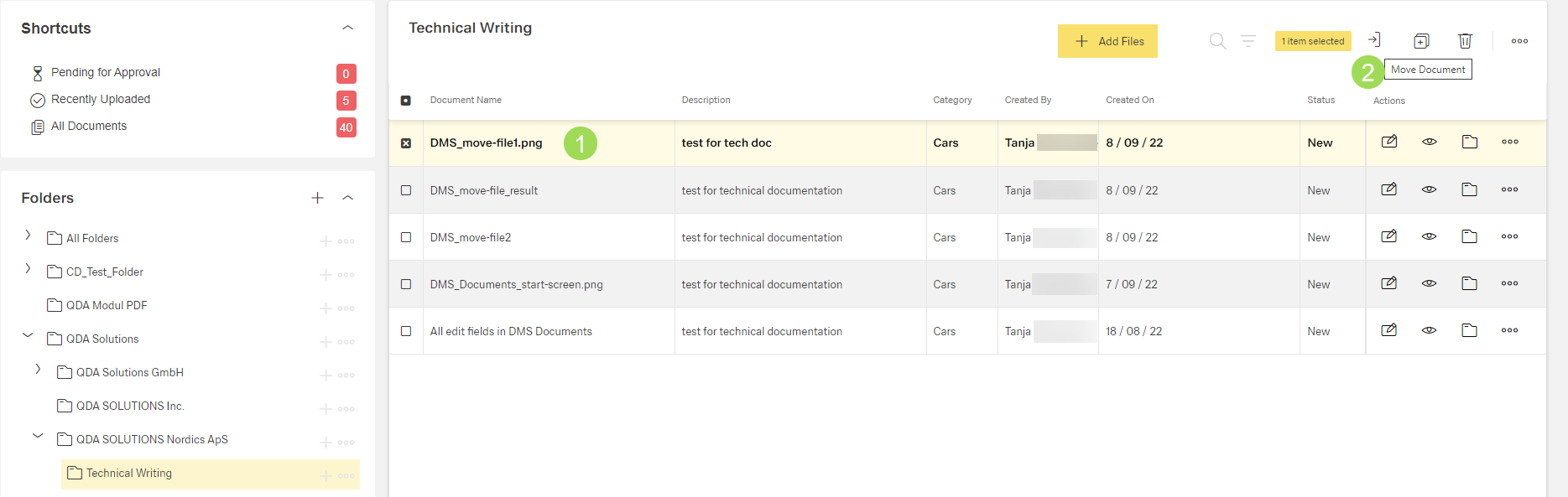 Move a document in DMS (step by step)