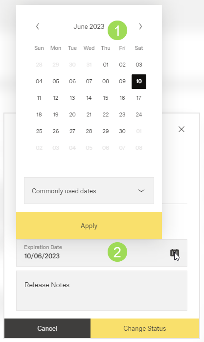 Check "Expiration Date" and change it if needed by clicking on the calendar button [] <3> to select the correct date