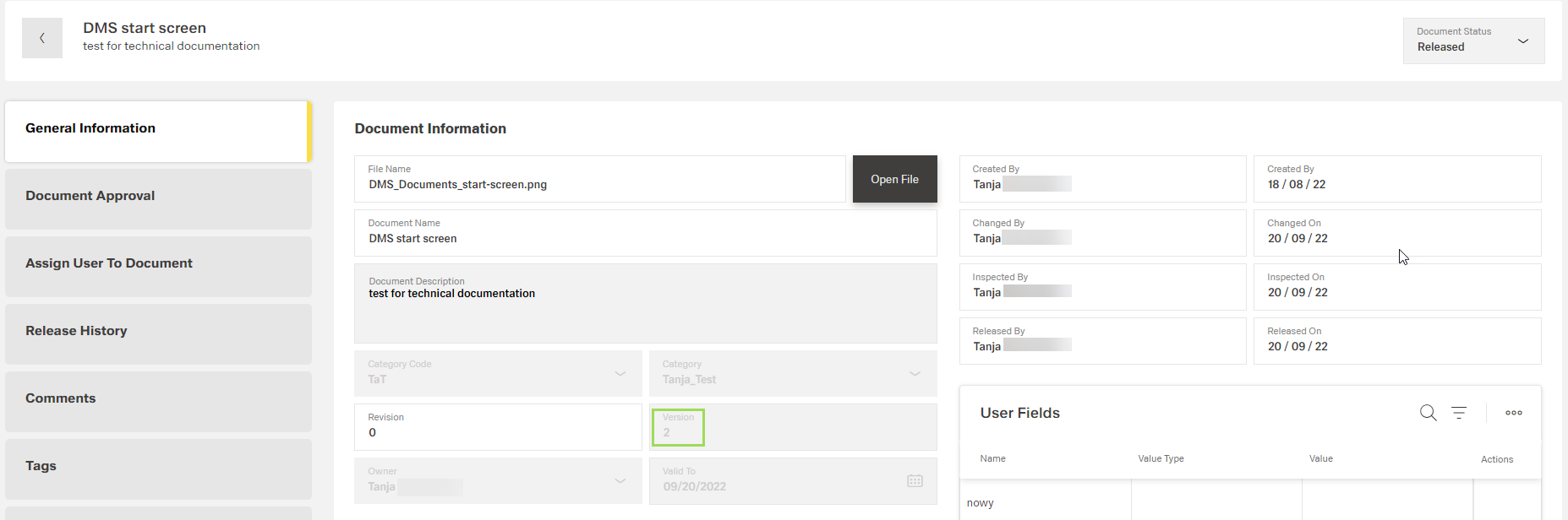 The release note is shown in "View Release History" of the selected document and in the DMS end user portal.