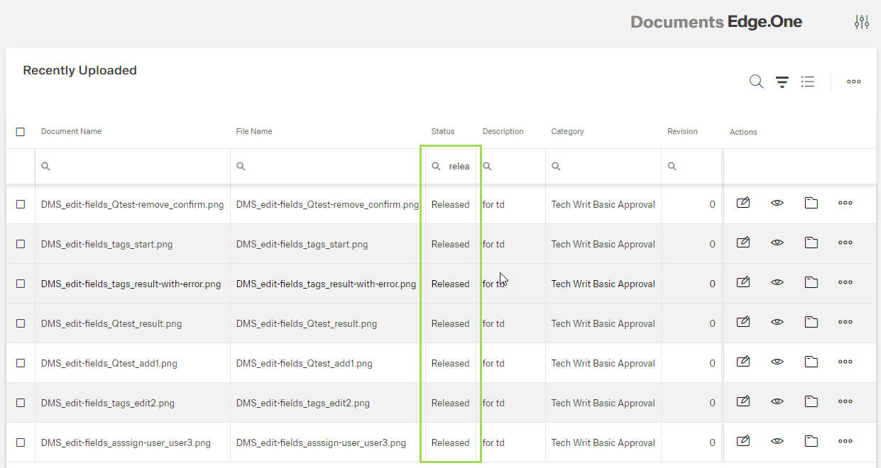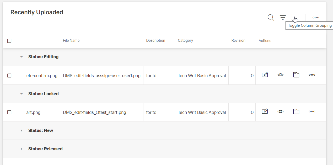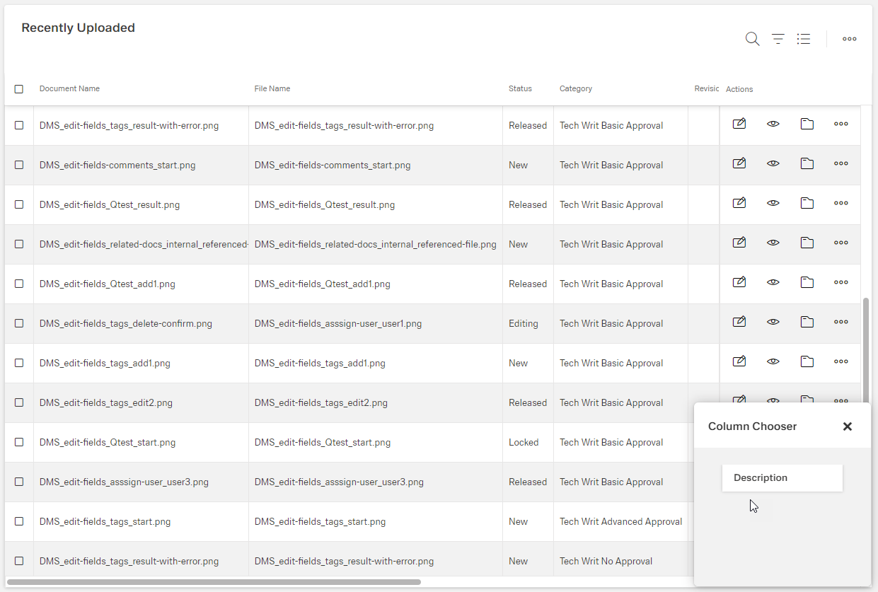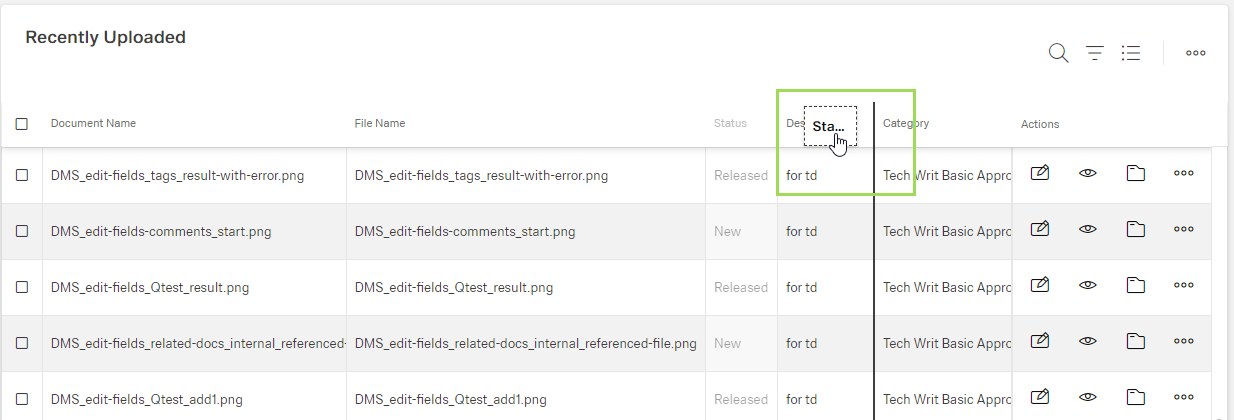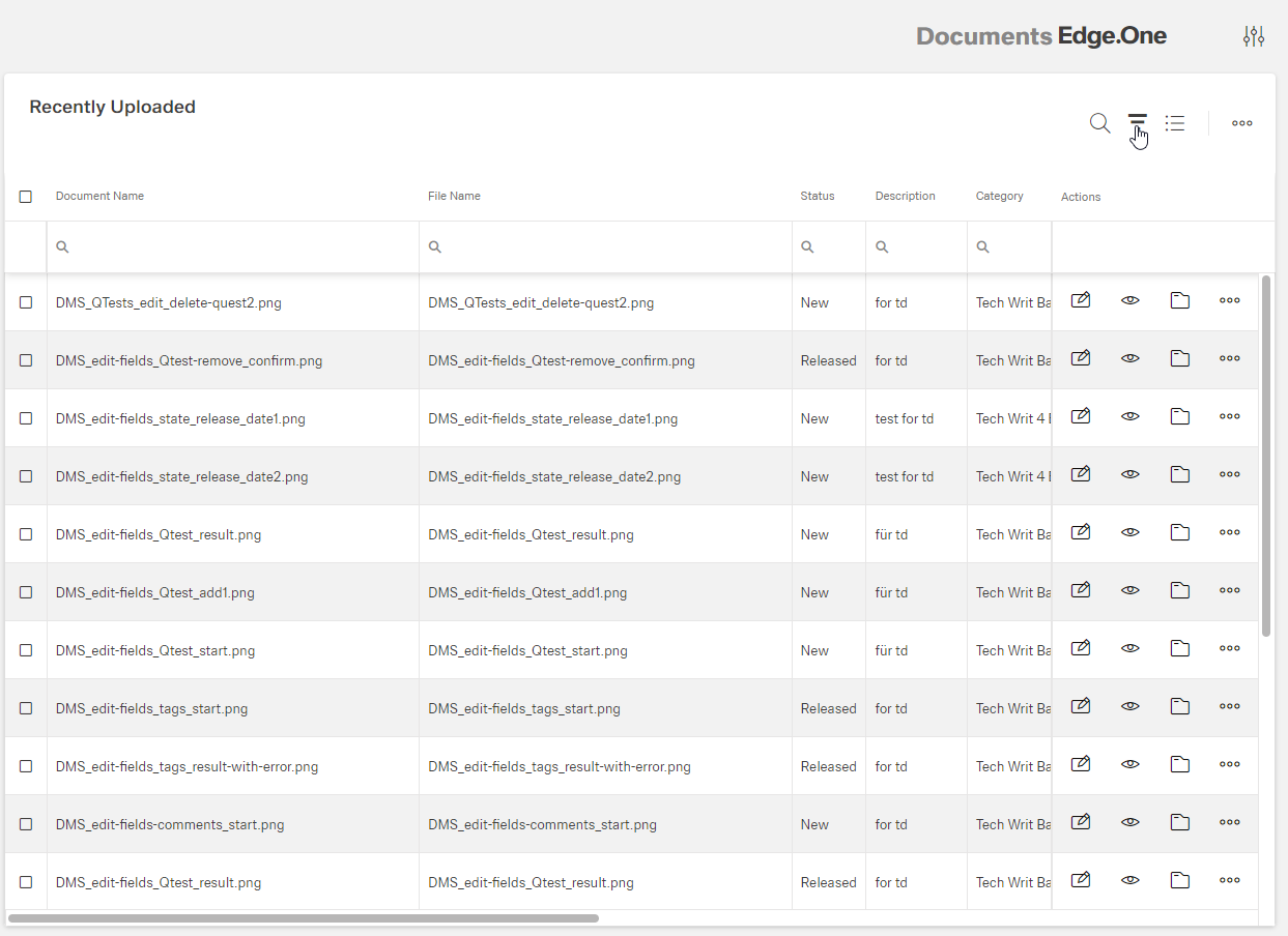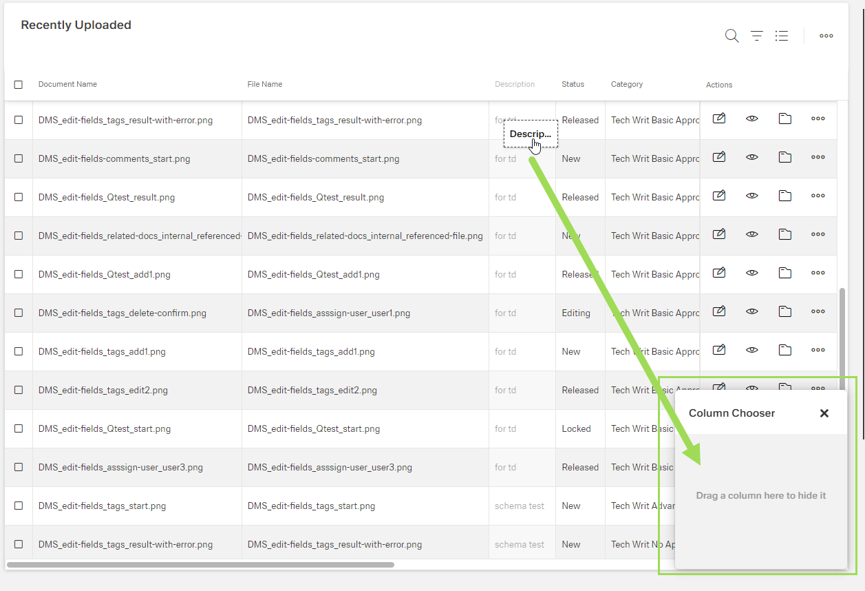 Please note: these settings are kept for all tables in this menu, e.g. when hiding a column in one folder, it's also applied to all other folders under Documents.