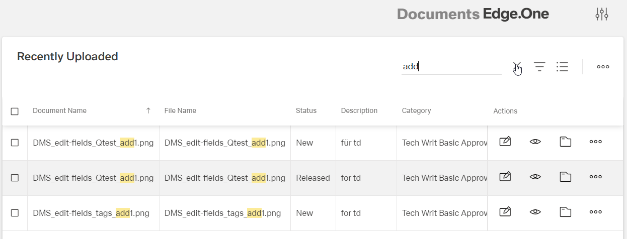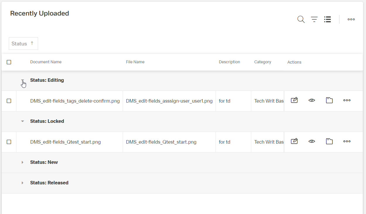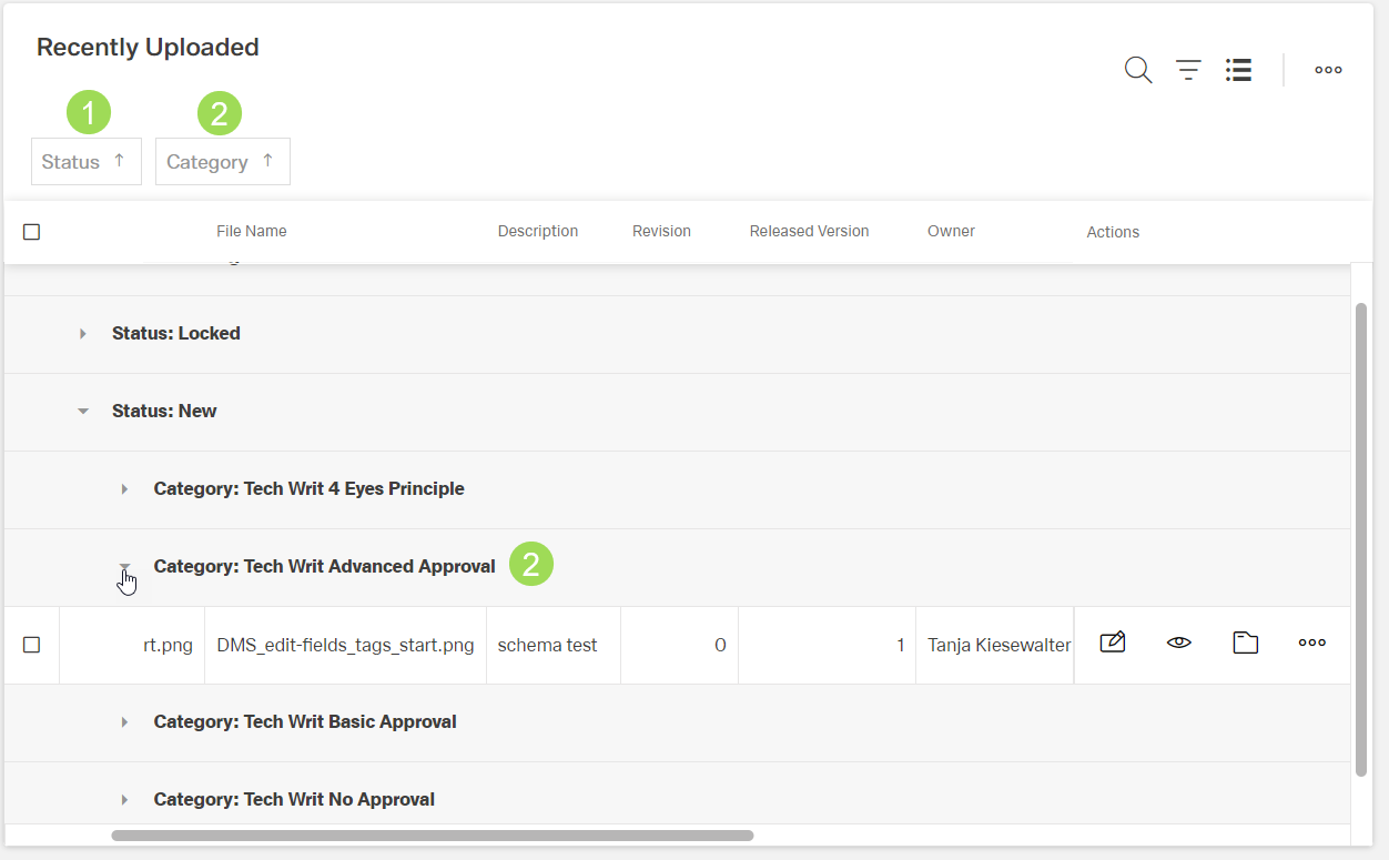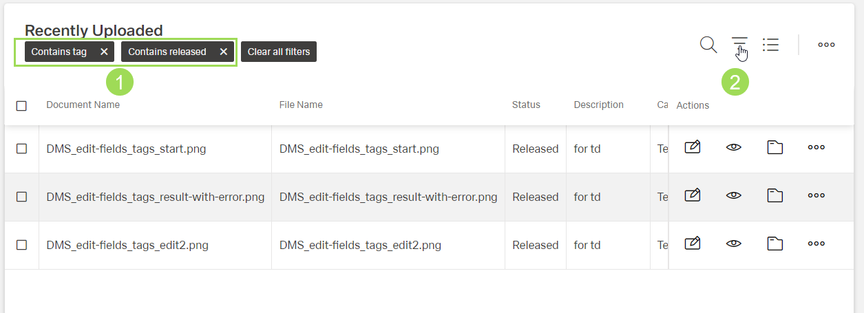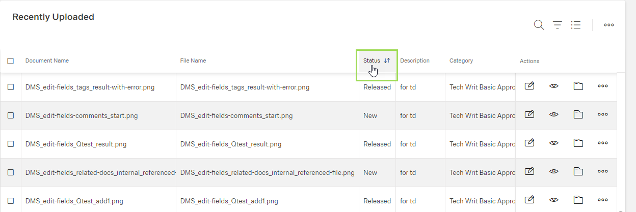 Please note: these settings are kept for all tables in this menu, e.g. when changing the order in one folder, it's also applied to all other folders under Documents.