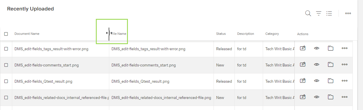 Please note: these settings are kept for all tables in this menu, e.g. when setting the width in a folder, it's also applied to all other folders under Documents.