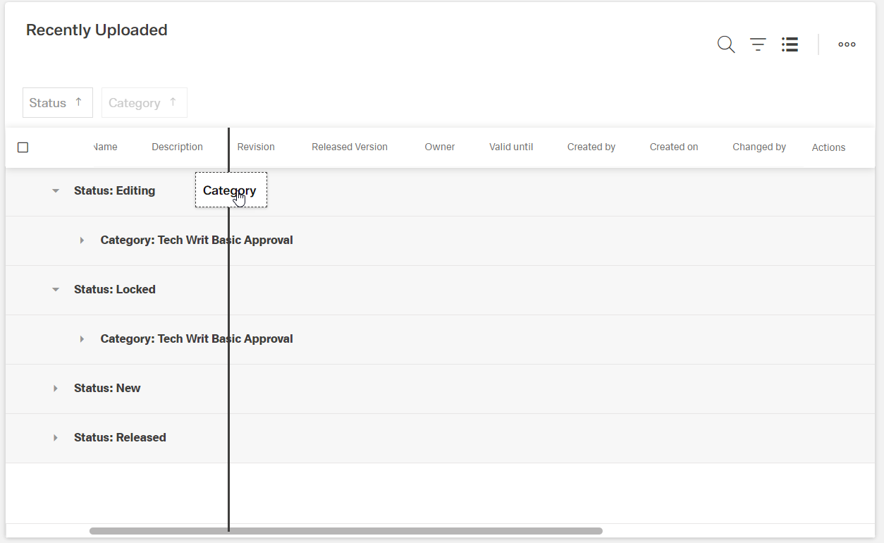 The table is sorted after all possible values of this column, e.g. for "Status":