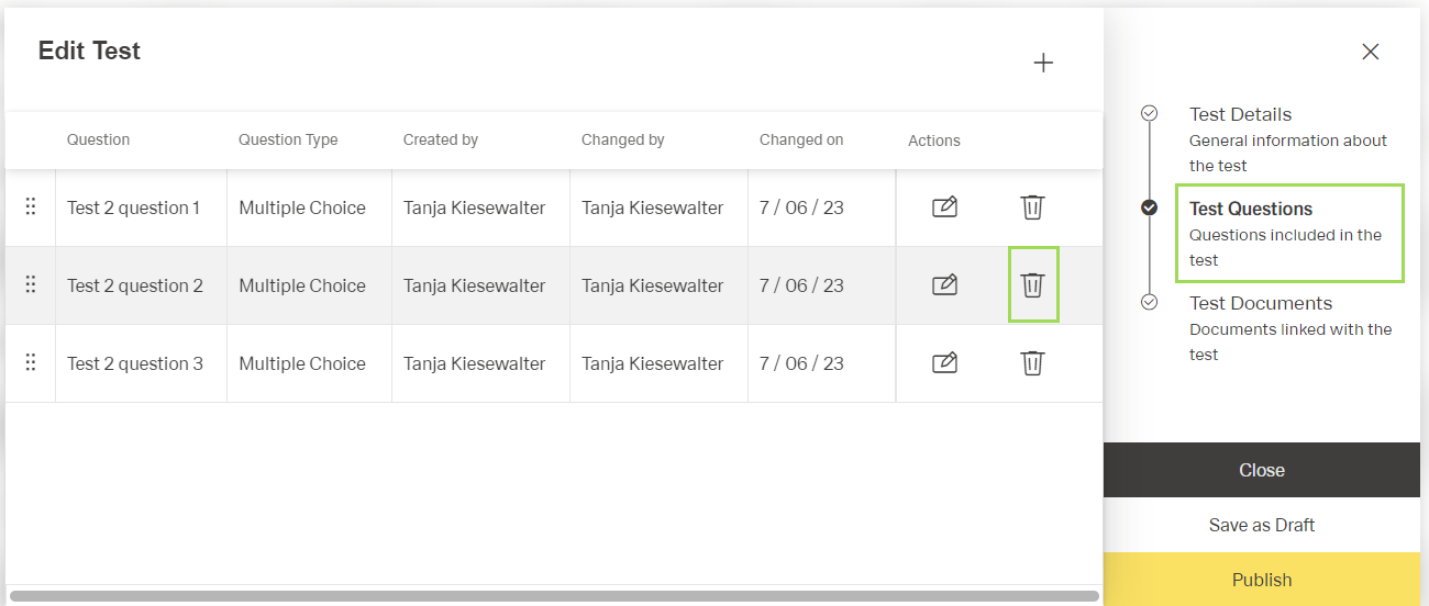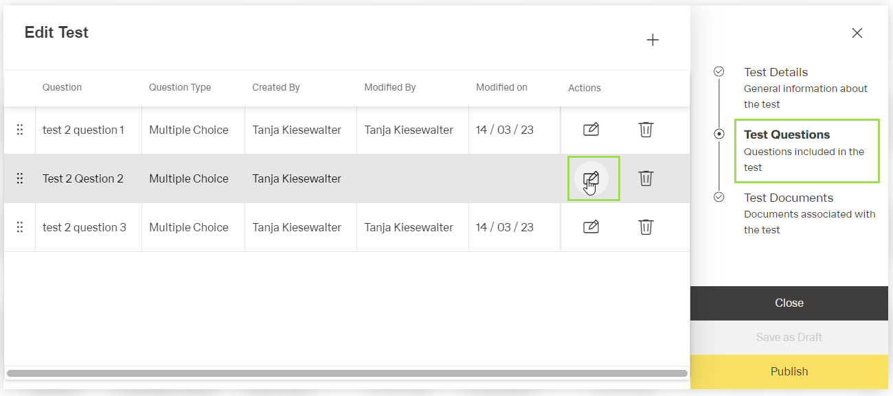 After clicking the button [] of the selected qualification test and selecting "Test Questions", the following window appears: